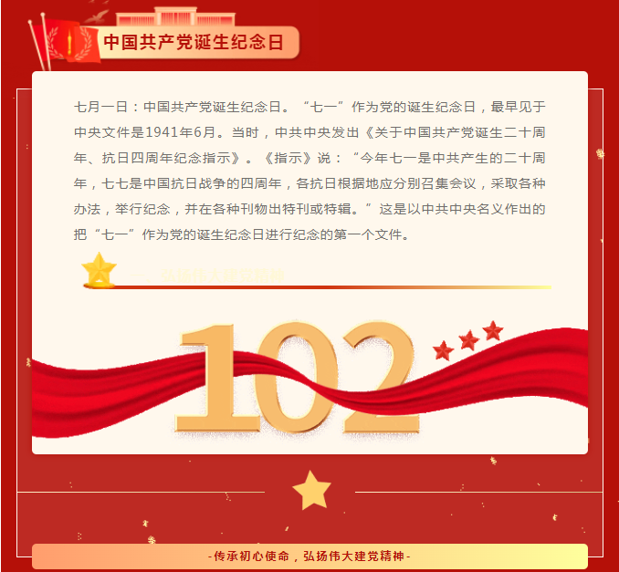 熱烈慶祝中國共產(chǎn)黨成立102周年!
