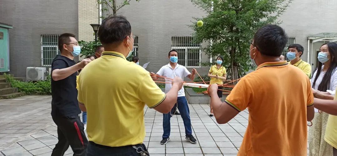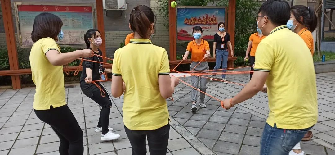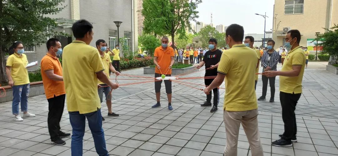 《動(dòng)感擊球》拓展活動(dòng),是團(tuán)隊(duì)所有的隊(duì)員分散在鼓的四周,每個(gè)人握住自己的繩子,在教練的口令下一起用鼓連續(xù)顛動(dòng)一個(gè)網(wǎng)球,挑戰(zhàn)在規(guī)定時(shí)間內(nèi)連續(xù)顛動(dòng)的次數(shù),目的是提高團(tuán)隊(duì)成員協(xié)作能力,增強(qiáng)團(tuán)隊(duì)的向心力,優(yōu)化團(tuán)隊(duì)工作流程,找準(zhǔn)團(tuán)隊(duì)角色定位,提升執(zhí)行力和目標(biāo)管理能力。拓展活動(dòng)由印刷、復(fù)合,制袋、物控、品控等7個(gè)小組參加角逐。