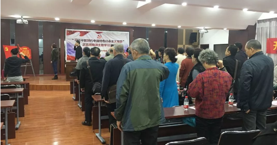 全體黨員齊聲唱響紅色歌曲《不忘初心》。