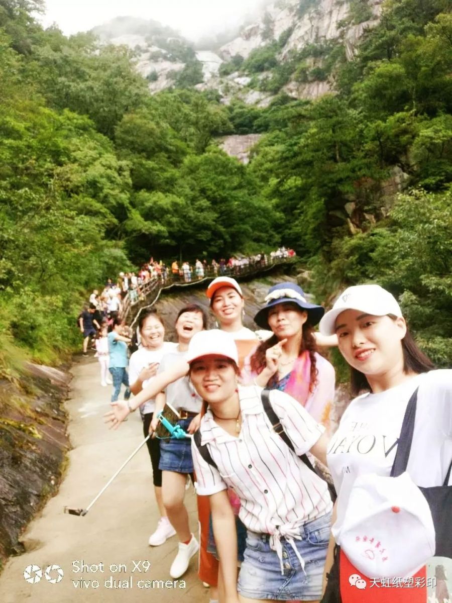七月的武漢,驕陽似火。在建黨97周年和司慶24周年之際,武漢市天虹紙塑彩印有限公司黨工團組織黨員、員工及家屬到風光秀麗的大別山避暑、觀光旅游。在開展黨建活動的同時,讓員工一起學習黨員的優(yōu)良作風,感受黨組織生活,也在這炎炎夏日為員工和家屬送去清涼。