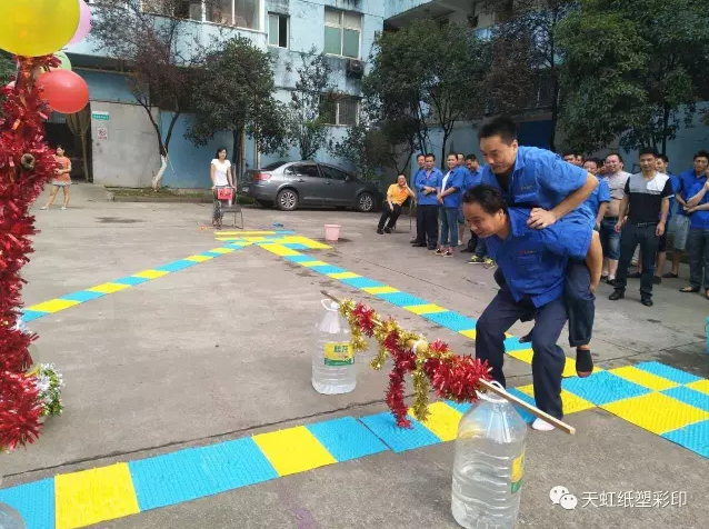 趣味運動會設雙人擠氣球、雙人跳繩、大象鼻子轉圈運輸水、豬八戒背媳婦、六人四足5個項目,參賽隊員積極參與,賽場上加油聲、歡笑聲此起彼伏,比賽中參賽各隊你追我趕,奮力拼搶,場外拉拉隊不斷吶喊助威,鼓舞士氣,大家充分享受運動帶來的刺激和樂趣。經過激烈的角逐,辦公樓、品控部、印刷車間分別榮獲冠軍、亞軍、季軍。